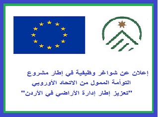 علان عن شواغر وظيفية في إطار مشروع التوأمة الممول من الاتحاد الأوروبي "تعزيز إطار إدارة الأراضي في الأردن"